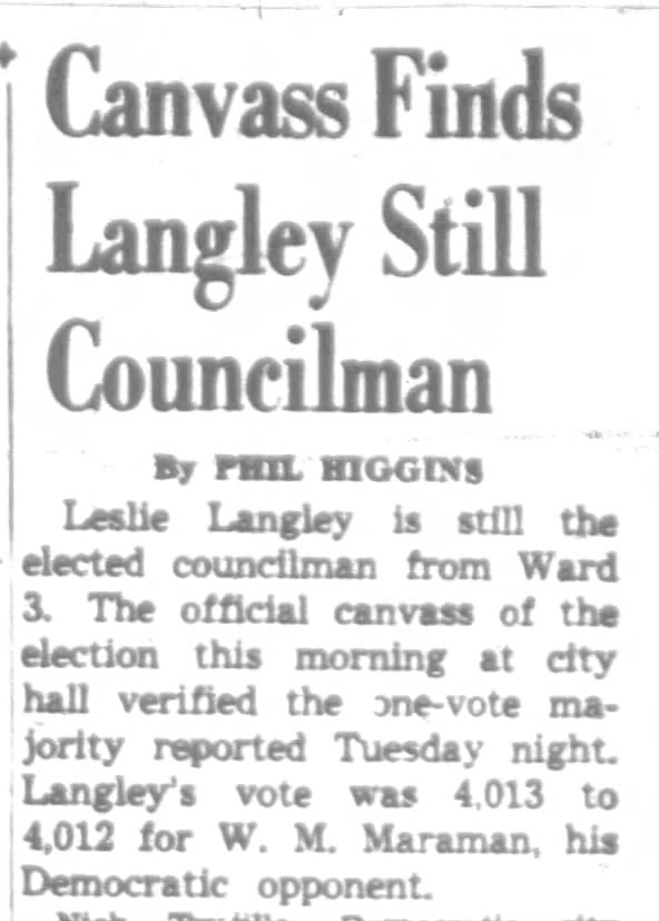 Mr. Langley once won an election by a single vote. Santa Fe New Mexican, Apr. 7, 1950