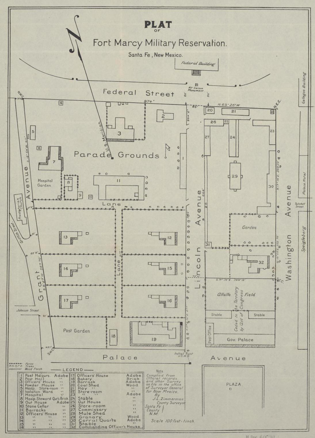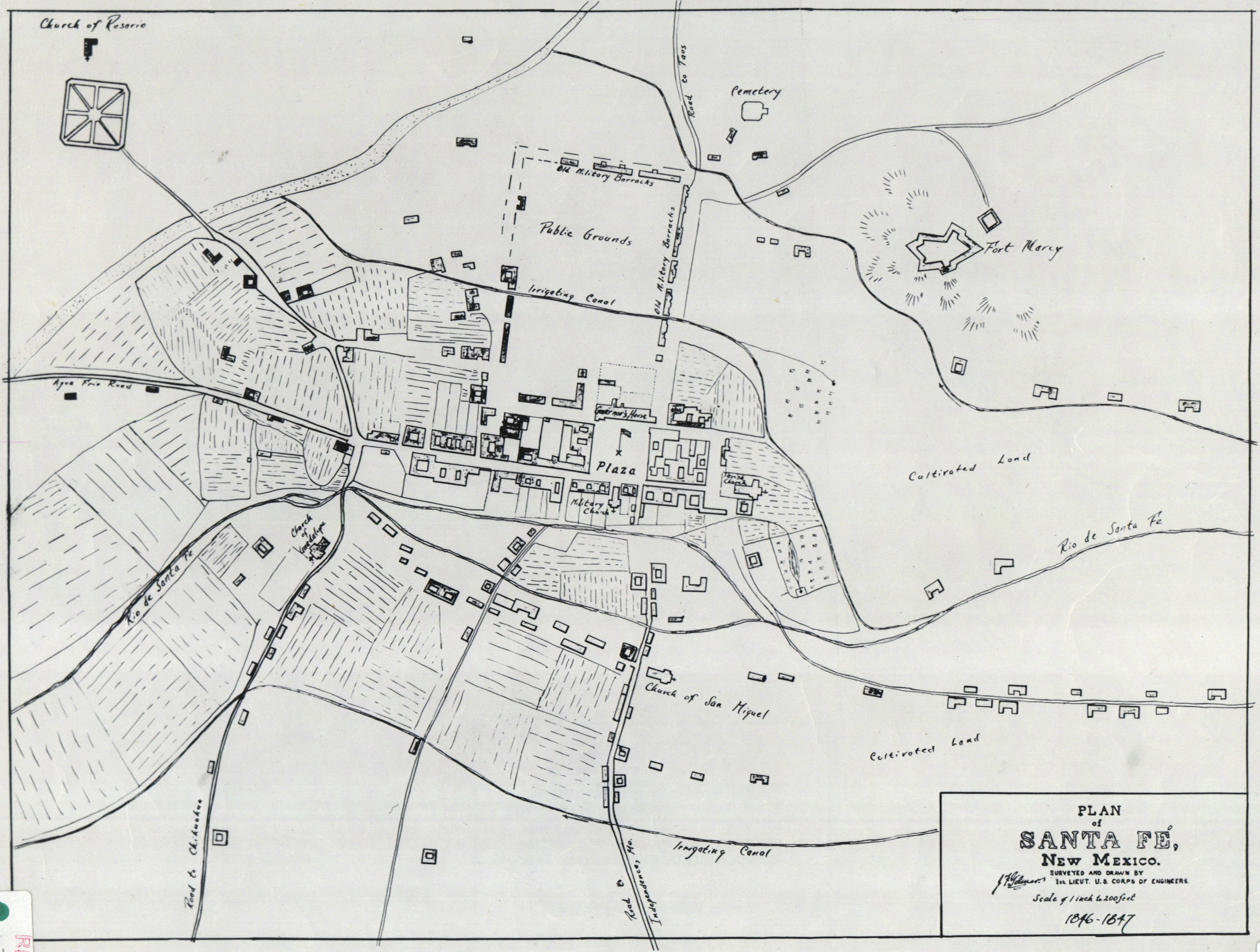 Plan of Santa Fe by J.F. Gilmer, 1846–47. Courtesy HSFF.